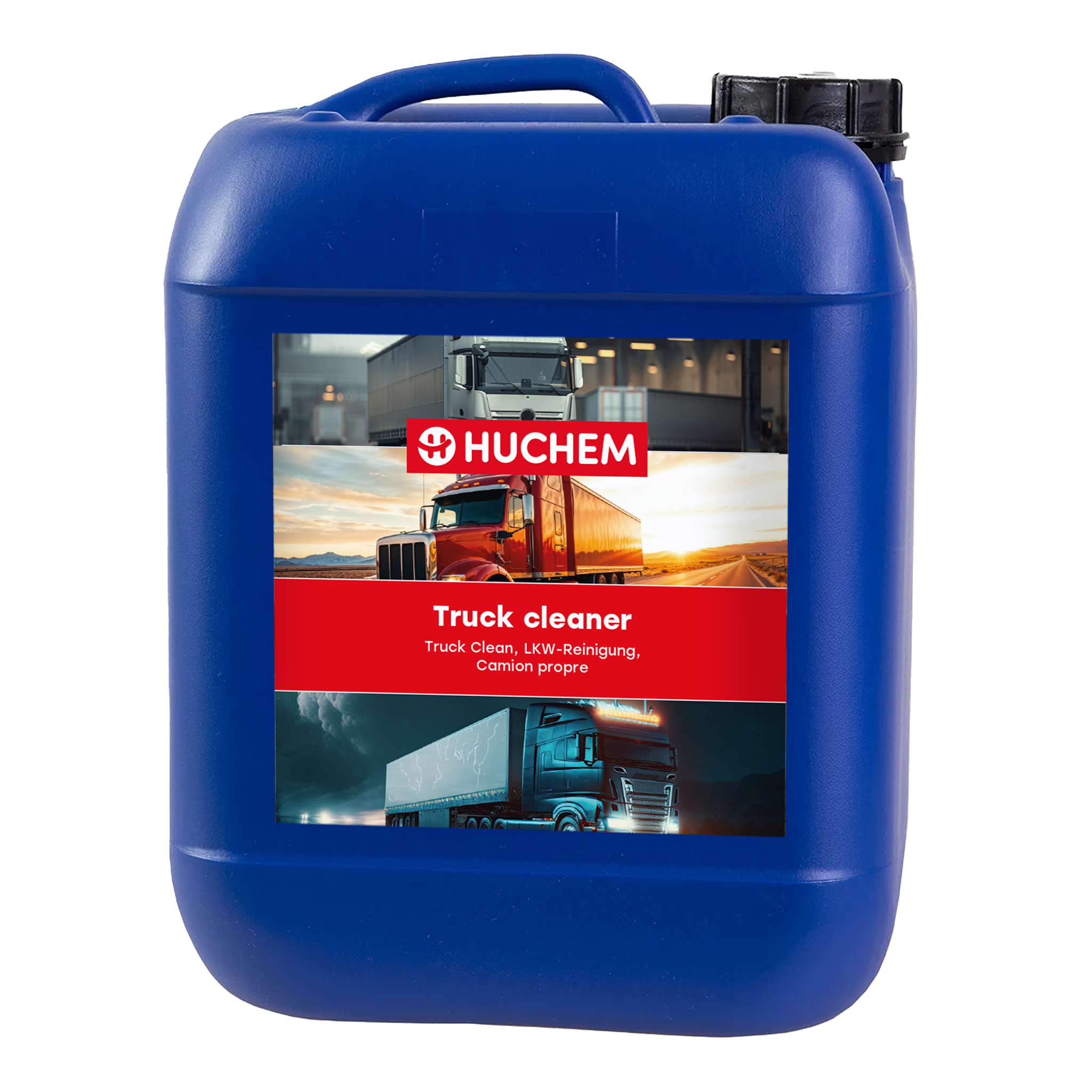 Huchem Truck Cleaner er en højkoncentreret lastbil- og presenningsrenser med en meget kraftig rengøringsevne. Velegnet til fjernelse af vejskidt og atmosfæriske aflejringer på alle typer transportmidler såsom lastbiler, tankvogne, tog, sporvogne, busser, containere osv. Også særdeles velegnet til rengøring af elektromotorer (både indvendigt og udvendigt). Indeholder ikke silikater og efterlader ikke hvide striber efter afskylning. Ved brug af dette produkt bliver mekanisk bearbejdning (f.eks. børstning) overflødig, hvilket sparer tid. Kan anvendes med lavtryks- og højtryksudstyr samt i lastbilvaskehaller (truckwash). Huchem Truck Cleaner er biologisk nedbrydelig.