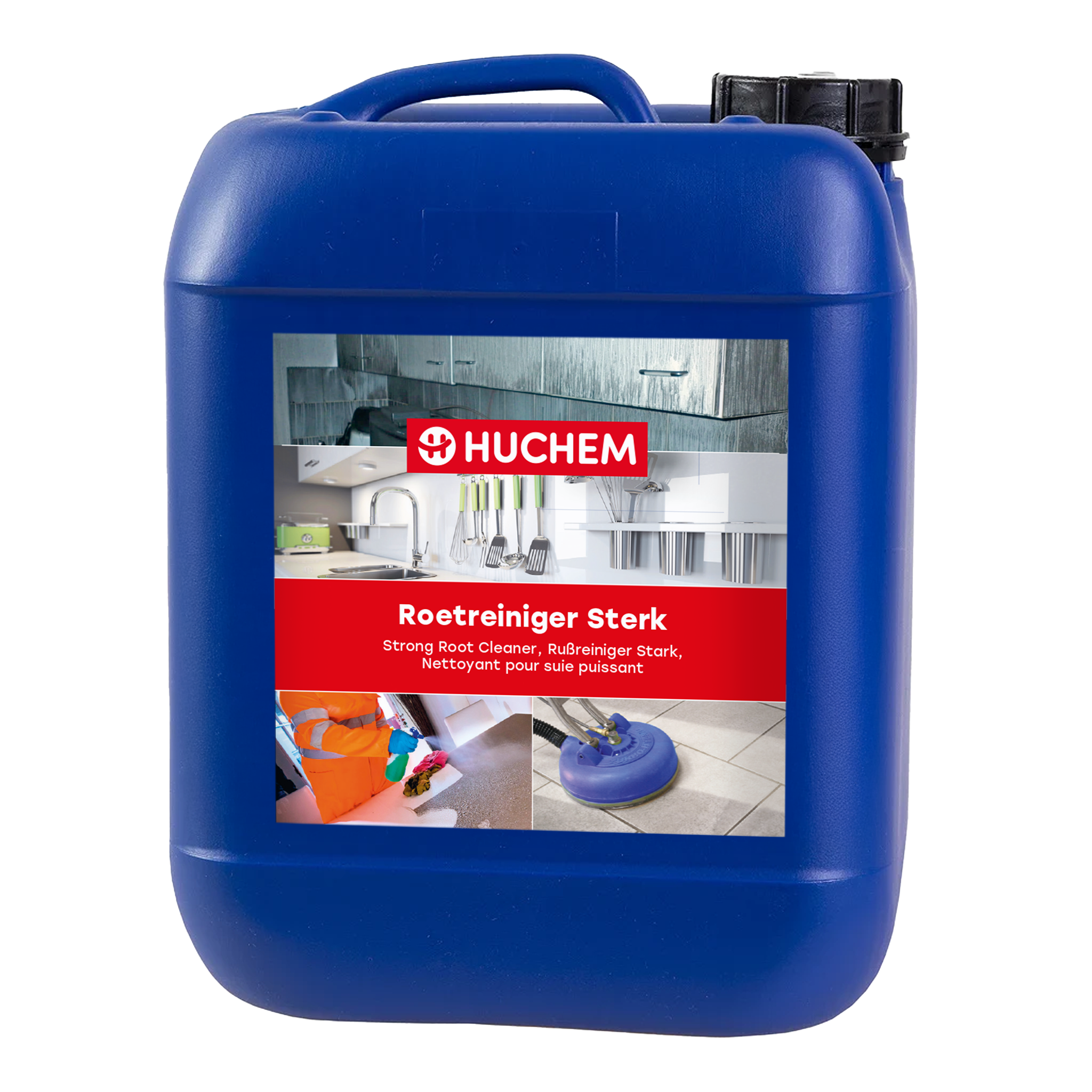 Huchem Soot Cleaner Strong er specielt udviklet til at fjerne sorte aflejringer (sod), nikotin og pletter forårsaget af brand, udstødningsgasser, varmeapparater eller komfurer. Det kan anvendes på alle slags overflader såsom metaller, vægge og lofter. Rengøringsmidlet kan bruges til at rense skader efter en brand.